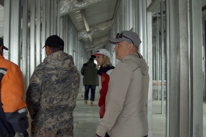 Общая готовность объекта составляет порядка шестидесяти процентов. На данный момент завершены земляные работы, устройство фундамента, а также монтаж метало-конструкций. На завершающем этапе находится монтаж стеновых панелей и их облицовка. В ближайшее время подрядная организация приступит к работам по электрике.