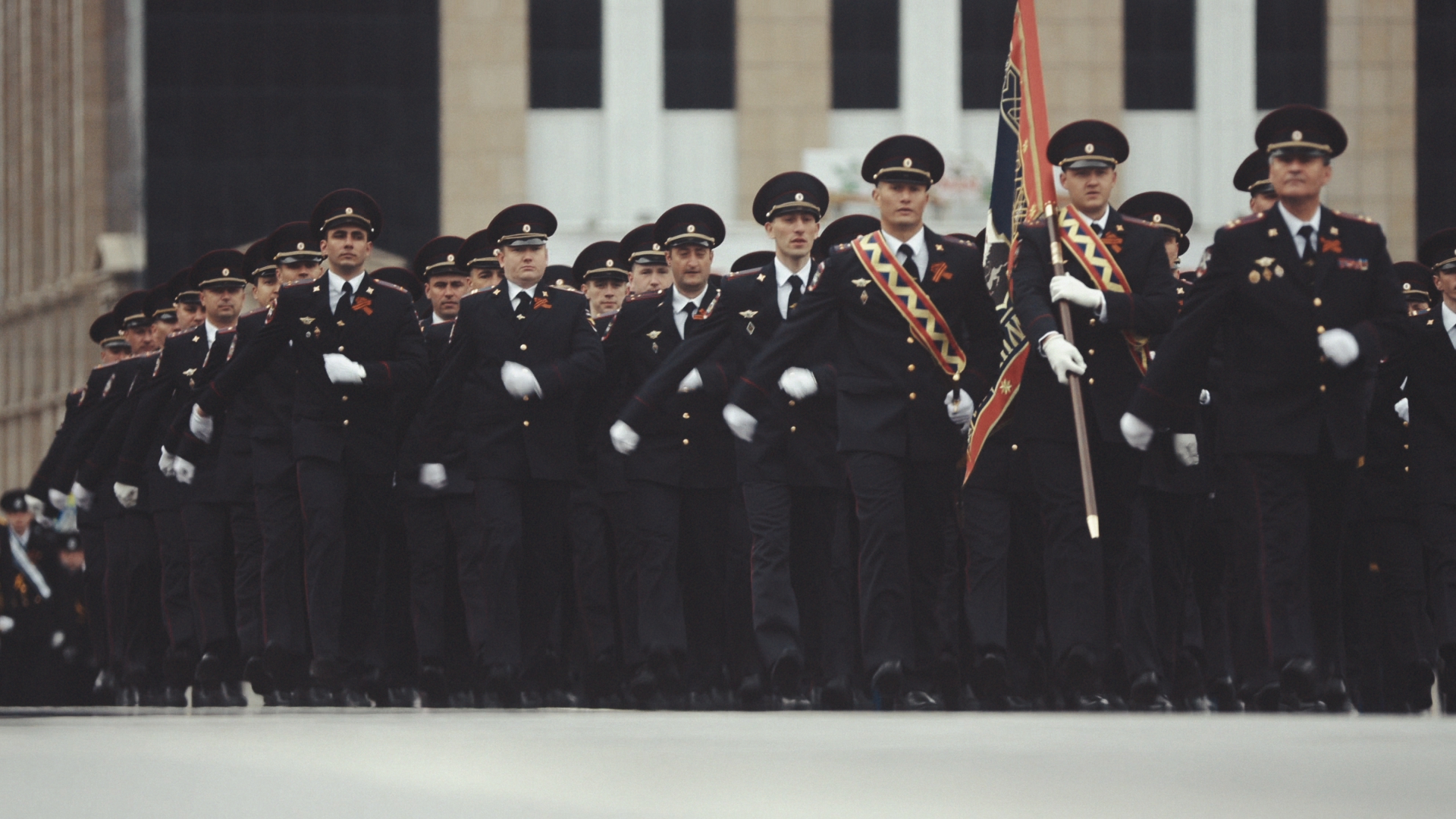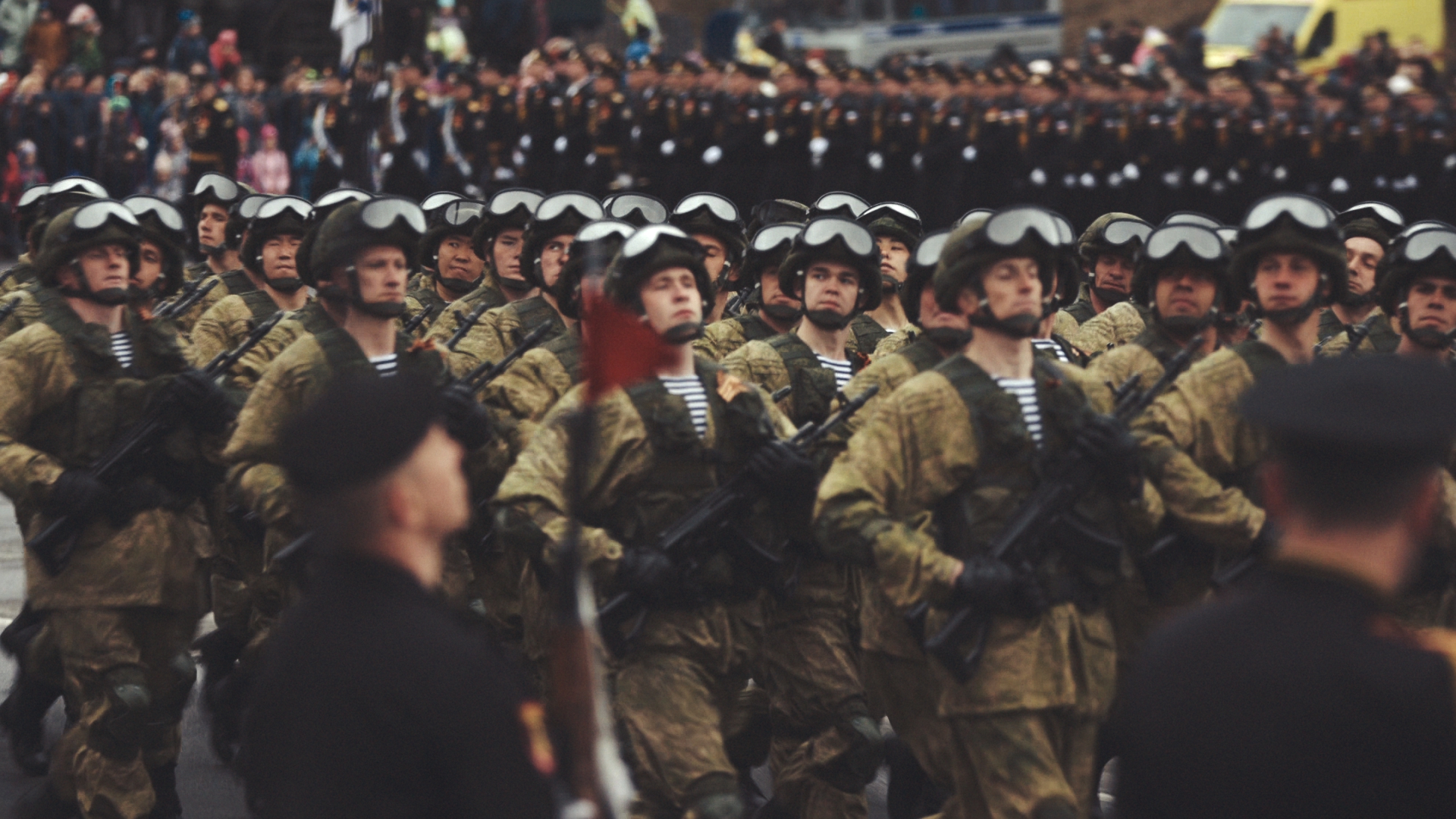 В прохождении торжественным маршем парадных расчётов приняли участие рота почётного караула, дивизия противовоздушной обороны, отдельная Краснодарско-Харбинская дважды Краснознамённая бригада морской пехоты, отдельная береговая ракетно-артиллерийская бригада, подразделения радиоэлектронной борьбы, ордена трудового Красного Знамени отдельный смешанный авиационный полк, бригада кораблей охраны водного района, пограничные части федеральной службы безопасности по Восточному Арктическому району, военнослужащие МЧС, УМВД, курсанты военно-учебного центра при КГТУ, юнармейцы и учащиеся кадетских классов.